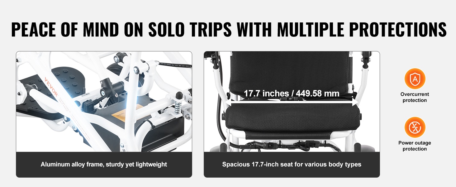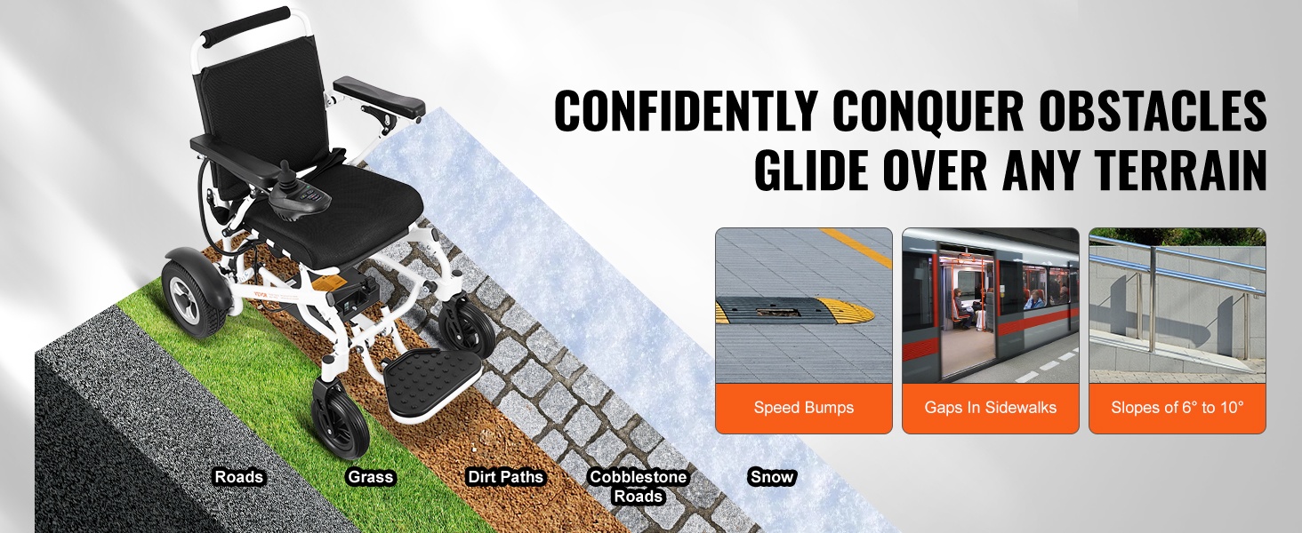 Tämä sähköpyörätuoli taittuu yhdellä painikkeella, mikä helpottaa sen sijoittamista auton tavaratilaan ja tekee matkustamisesta vaivattomampaa. Kiinteät, räjähdyssuojatut ja iskunvaimennetut renkaat sekä hyvä mäennousukyky suoriutuvat erilaisista alustoista sujuvasti.