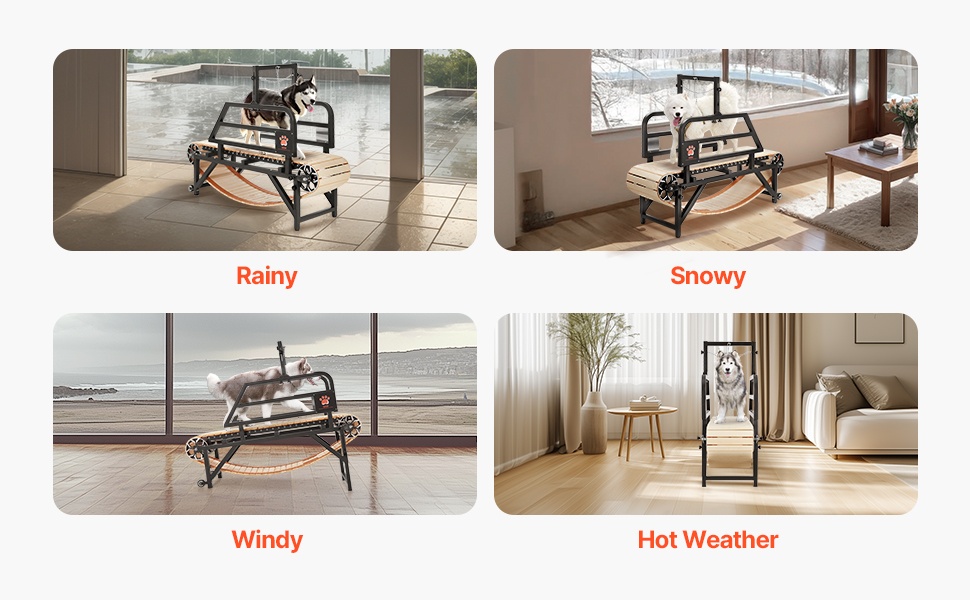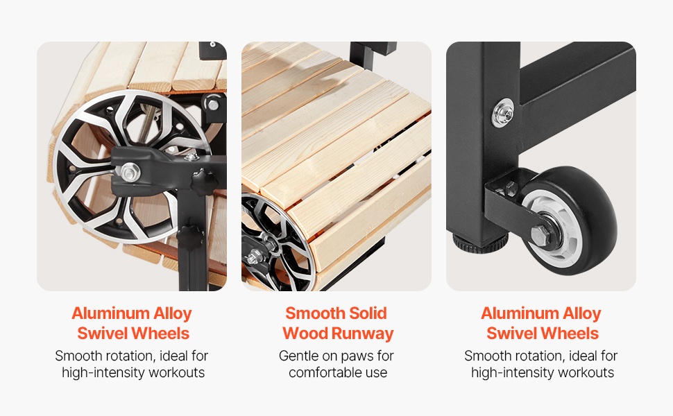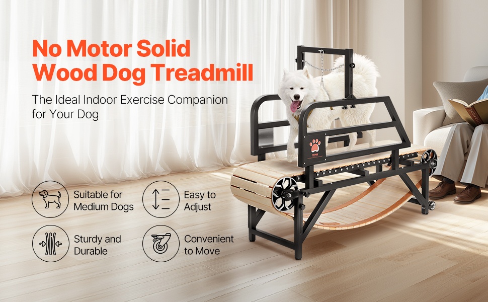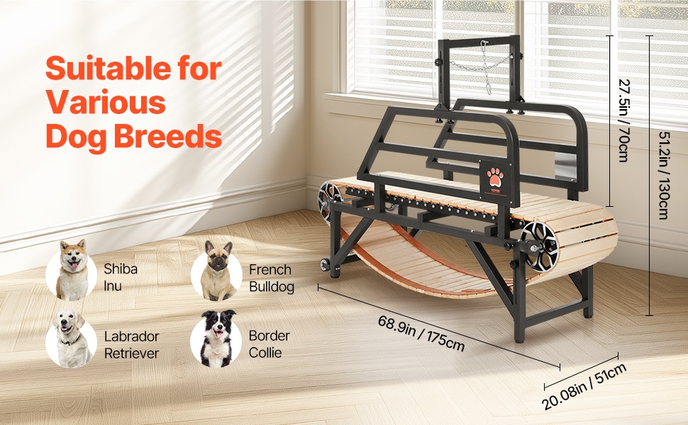 Tämä sähkötön koirien juoksumatto tarjoaa turvallisen ja tehokkaan tavan pitää lemmikki hyvässä kunnossa ympäri vuoden. Hiiliteräsrungon, puisen juoksualustan ja alumiinisten rullien yhdistelmä tekee harjoittelusta koiralle miellyttävää. Säädettävä talutusremmin kiinnitys ja kaltevuus sopivat erityisesti keskikokoisille ja suurille koirille, joiden paino on enintään 330 lbs. Juoksumatto sopii sisätiloihin, kellariin tai pihalle, eikä käyttöä rajoita sää tai pieni tila.