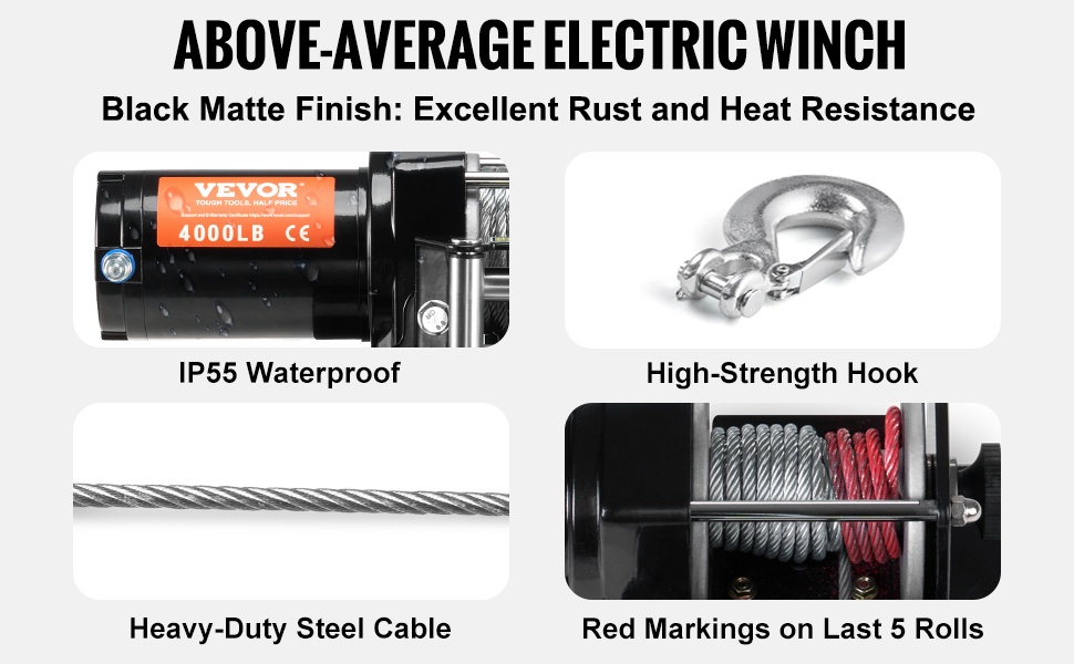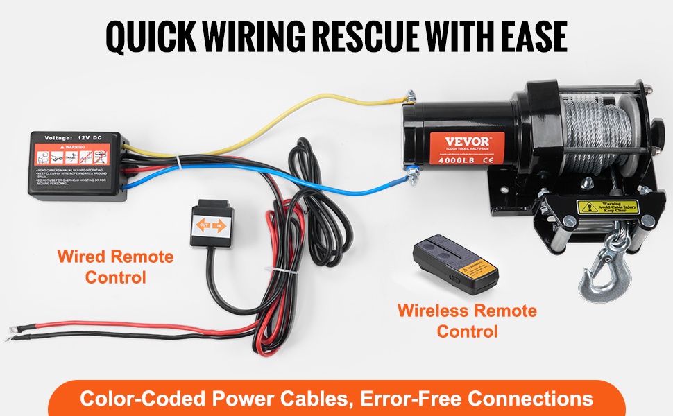 Sähkövinssi 12V 2041 kg vetokyky 19-säikeinen teräsvaijeri IP55 langaton ohjain
