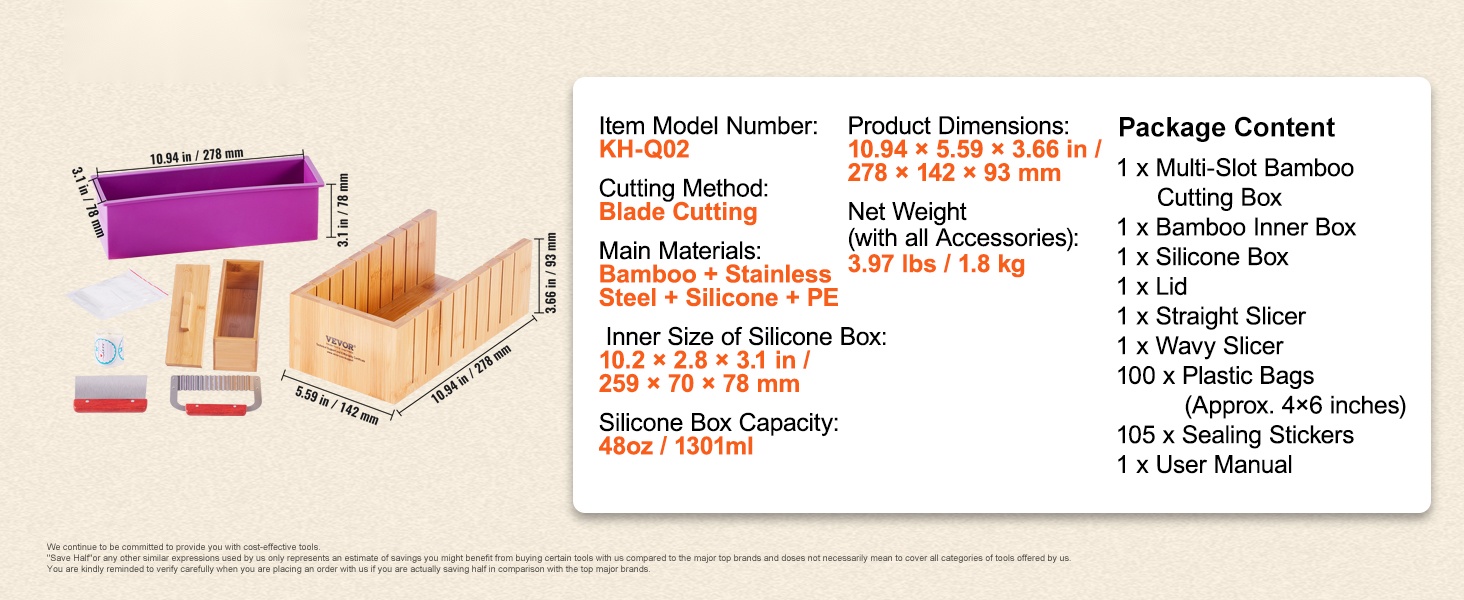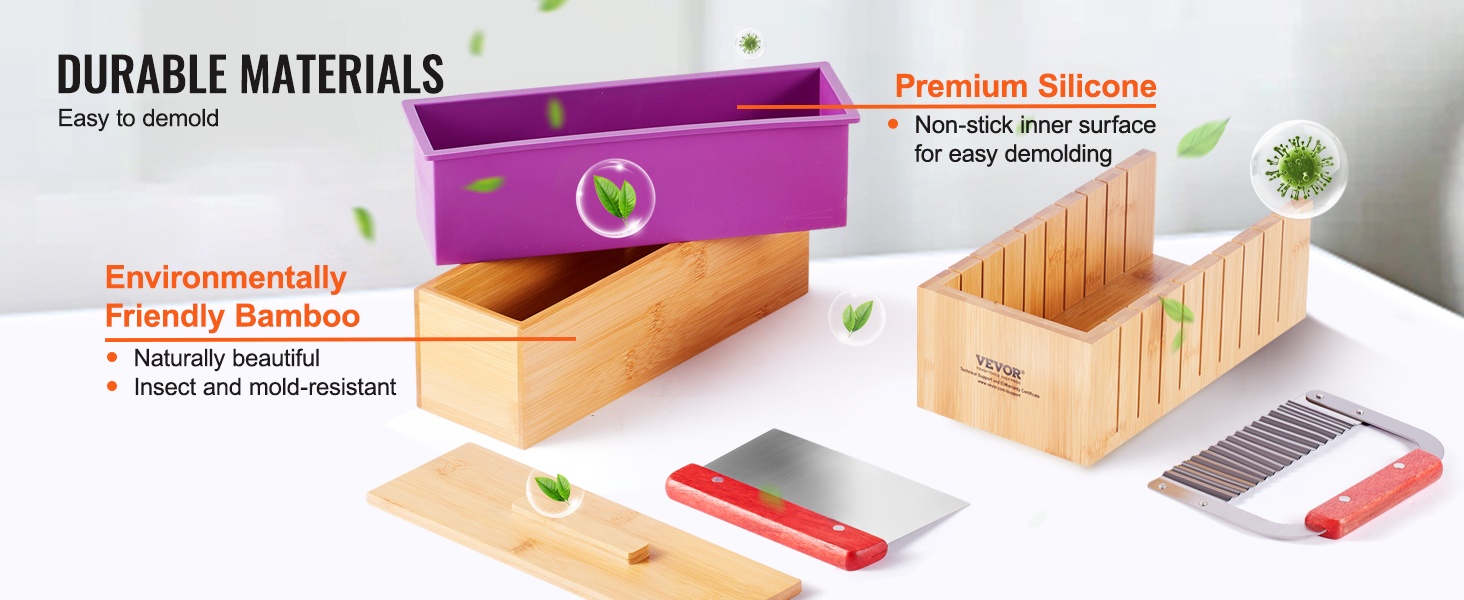 Saippualeikkurin runko on valmistettu puusta, joka tekee työskentelystä vakaata ja miellyttävää. Leikkauslanka on teräslankaa, ja rakenteessa on käytetty 201-ruostumatonta terästä kestävyyden parantamiseksi. Mukana tuleva silikonimuotti helpottaa saippuan irrottamista ja tehostaa tuotantoa.