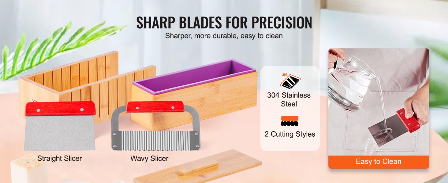 Leikkuri voi katkaista 1–12 saippuapalaa kerralla, jolloin kaikki kappaleet pysyvät samanlevyisinä. Leikkauslankojen kireyttä voi säätää, mikä parantaa käyttömukavuutta ja pidentää lankojen käyttöikää. Työkalu soveltuu sekä saippuanvalmistukseen että esimerkiksi kynttilämassojen ja muiden käsityöprojektien leikkaamiseen.
