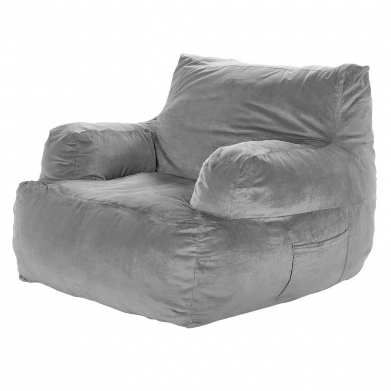 Pehmeä ja mukava säkkituoli aikuisille, jossa on tukevat käsinojat ja muhkea plyysipäällinen. Korkeatiheyksinen vaahtotäyte muotoutuu vartalon mukaan ja tarjoaa miellyttävän tuen rentoutumiseen olohuoneessa, makuuhuoneessa tai kotitoimistossa. Neutraali harmaa väri sopii monenlaiseen sisustukseen.