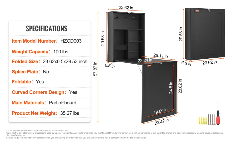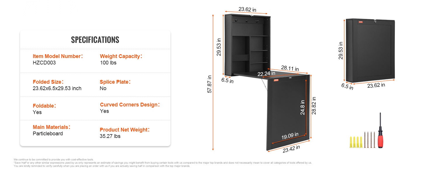 Kompakti 23.62x6.5x29.53 inch seinään kiinnitettävä taittopöytä toimii monenlaisissa tiloissa. Se sopii työpisteeksi, opiskelupisteeksi, ruokailupöydäksi tai esillepanotasoksi. Kestävän pöytäpinnan ansiosta rakenne on tukeva, ja sileä pinta helpottaa puhdistusta. Taitettava rakenne auttaa säästämään tilaa, erityisesti pienissä huoneissa ja asunnoissa.