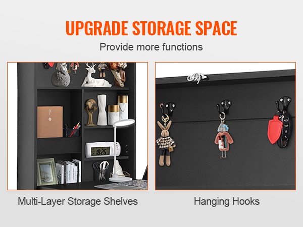 Pöytä avautuu ja sulkeutuu sujuvasti. Käytön jälkeen pöytälevy voidaan taittaa seinää vasten, jolloin se vie hyvin vähän tilaa. Ratkaisu sopii erityisen hyvin pieniin makuuhuoneisiin, asuntoihin, parvellisiin tiloihin tai matkailuajoneuvoihin. Monitasoiset hyllyt ja koukut auttavat pitämään tarvikkeet järjestyksessä ja helposti käden ulottuvilla.