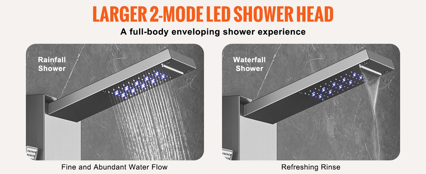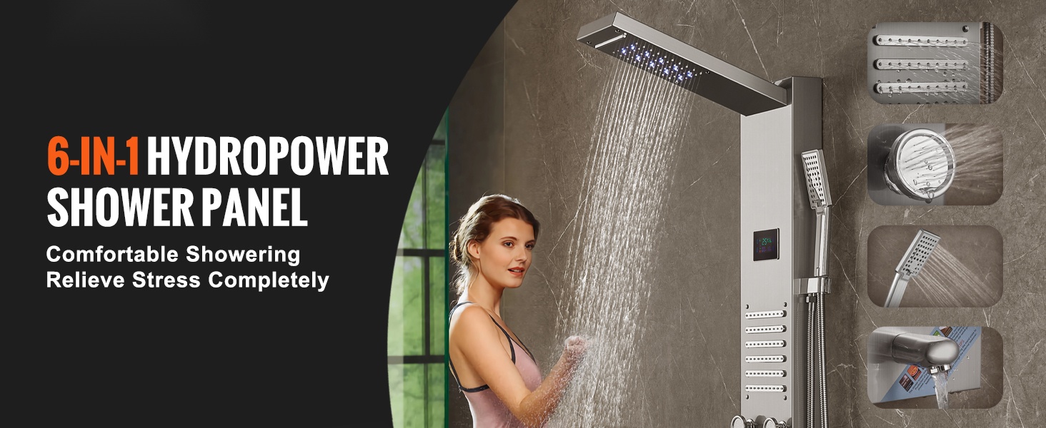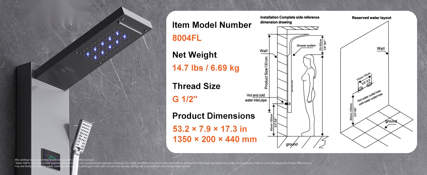 G 1/2" -kierteinen liitäntä takaa hyvän veden tuoton ja vakaan paineen. Suihkupaneeli sopii useimpiin kylpyhuoneen kalusteisiin ja putkistoihin ilman lisäsovittimia.