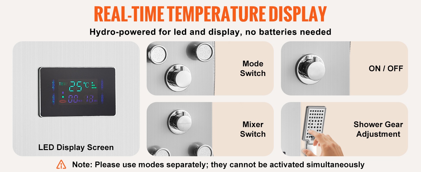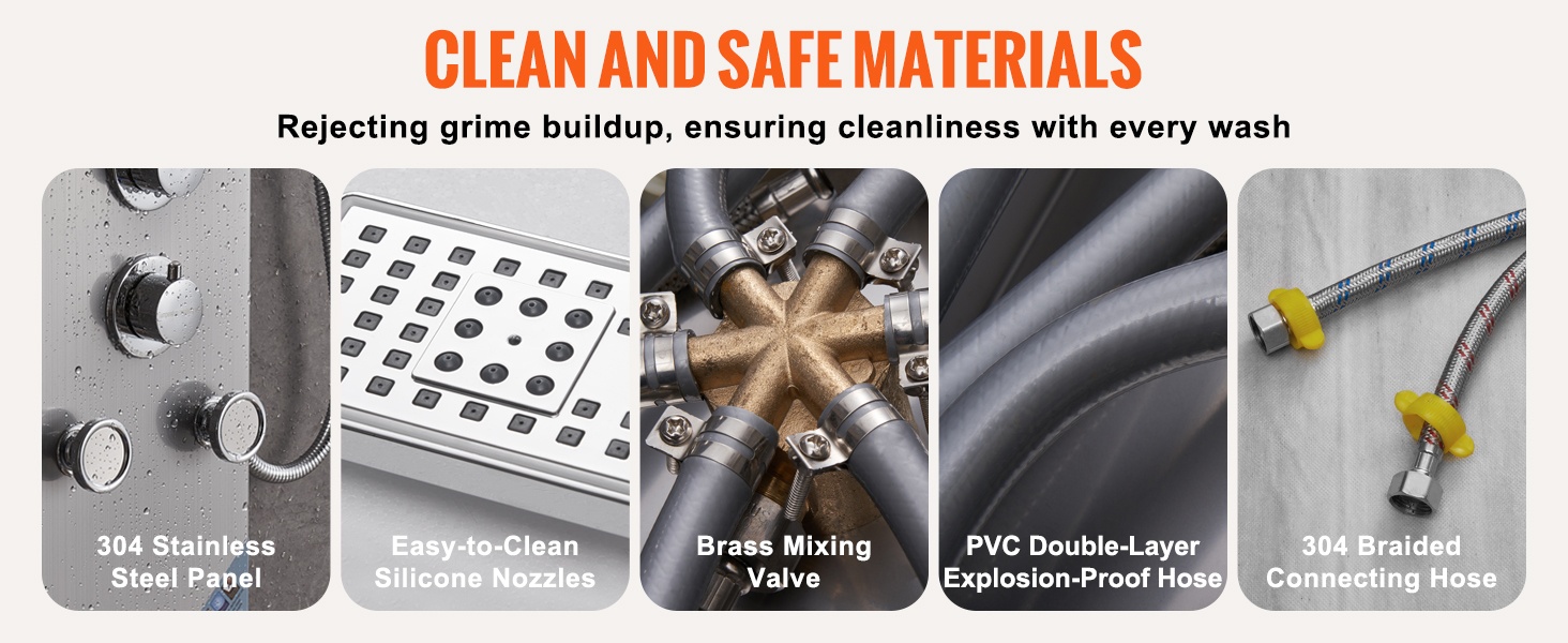 Paksunnettu 304-ruostumattomasta teräksestä valmistettu paneeli on hygieeninen, korroosionkestävä ja helppo puhdistaa. Messinkinen sekoitusventtiili, PVC-kaksoisräjähdyssuojattu putki ja 304-ruostumattomasta teräksestä punottu letku varmistavat tukevan ja vuotamattoman järjestelmän.