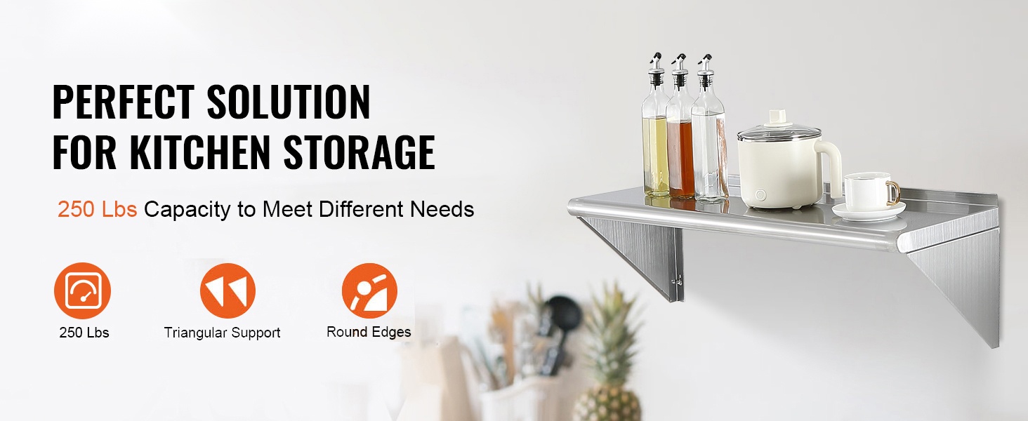 Seinään kiinnitettävä kelluva hylly on valmistettu kestävästä 430-ruostumattomasta teräksestä. Vankka rakenne, hyvä kantavuus ja helppo asennus tekevät siitä käytännöllisen ratkaisun ammattikeittiöihin ja kotiin.
