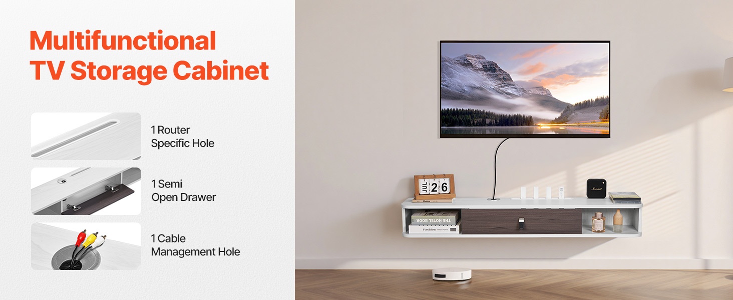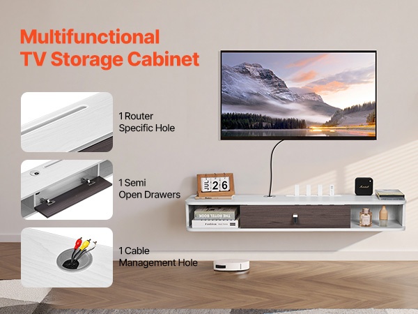 TV-taso auttaa pitämään viihdelaitteet järjestyksessä. Hyvin suunniteltu sisätila sopii esimerkiksi kirjoille, reitittimille, peliohjaimille, DVD-soittimille ja pelikonsolille. Osittain avoimet laatikot tarjoavat helpon pääsyn usein käytettäviin tavaroihin ja tekevät arjesta sujuvampaa.