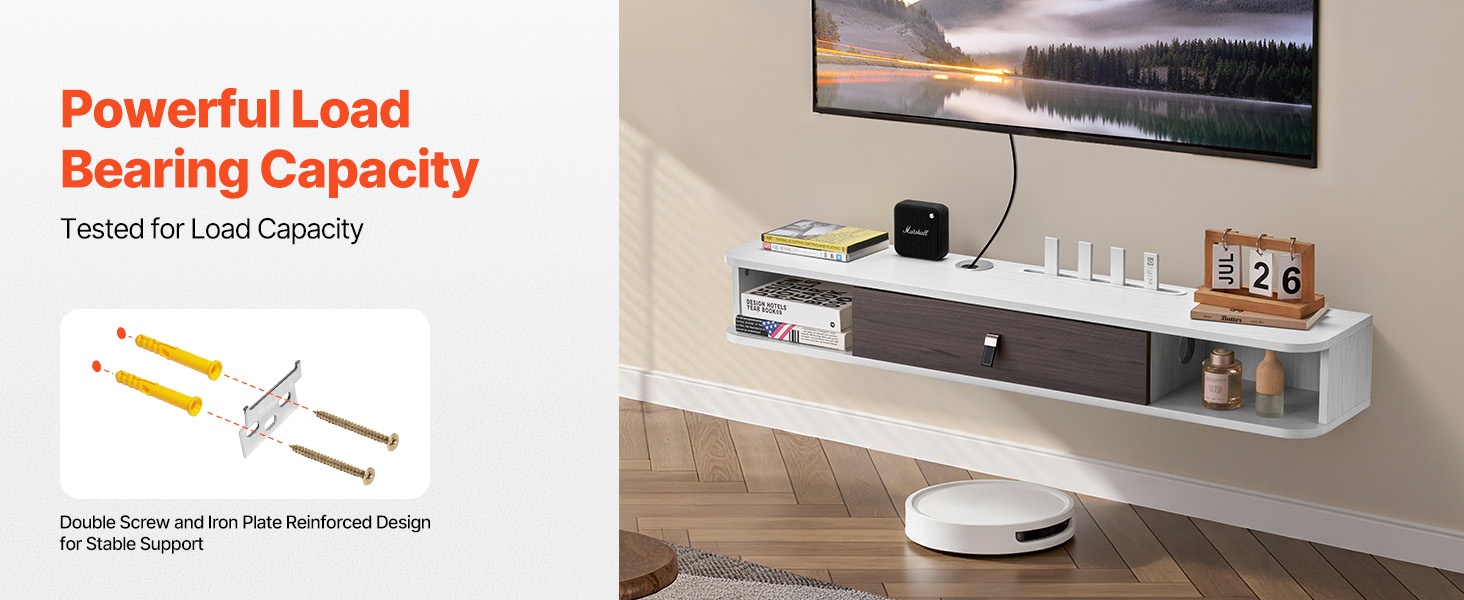 Pakkaus sisältää kaikki tarvittavat kiinnikkeet sekä yksityiskohtaisen asennusohjeen. Kun taso kiinnitetään tukevasti seinään ja ohjeita noudatetaan vaihe vaiheelta, käyttöönotto sujuu nopeasti ja turvallisesti.