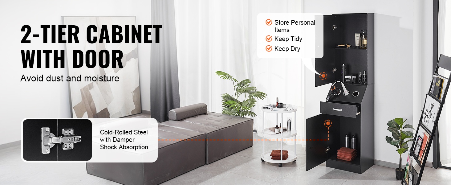 Kaluste sopii kampaamoihin, kauneushoitoloihin, spa-tiloihin ja myös kotiympäristöön. Se auttaa pitämään työskentelyalueen siistinä ja selkeänä sekä tuo tilaan huolitellun ilmeen.
