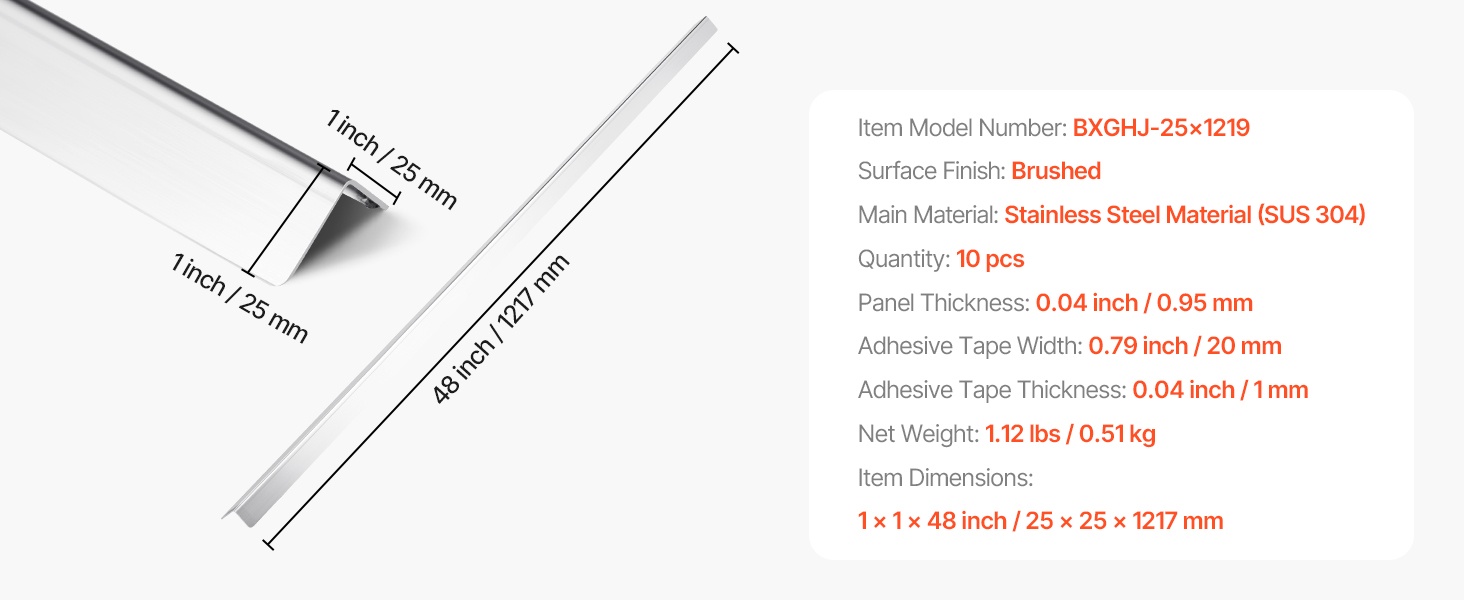 - Tuotteen mitat: 1 x 1 x 48 inch / 25 x 25 x 1217 mm