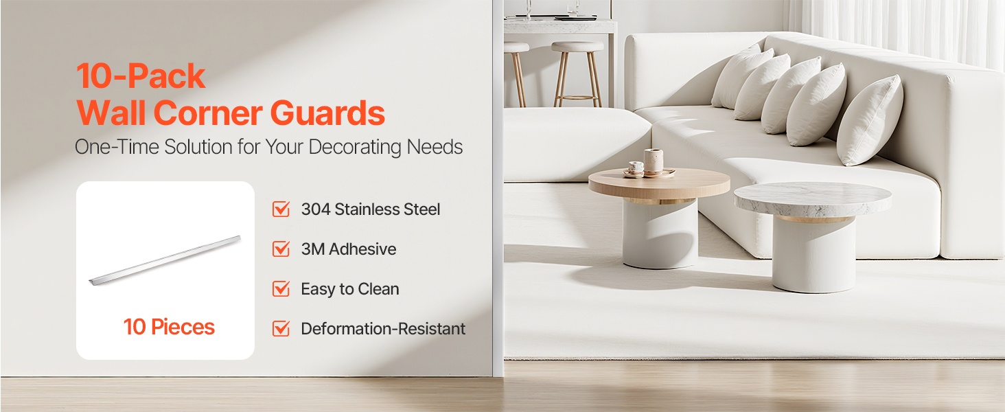 Kulmasuojat on valmistettu 304-ruostumattomasta teräksestä, jossa on kehittynyt pinnoitetekniikka. Materiaali kestää hyvin kulutusta ja tarjoaa pitkäaikaista seinäsuojaa sekä sopii moderniin, selkeälinjaiseen sisustukseen.