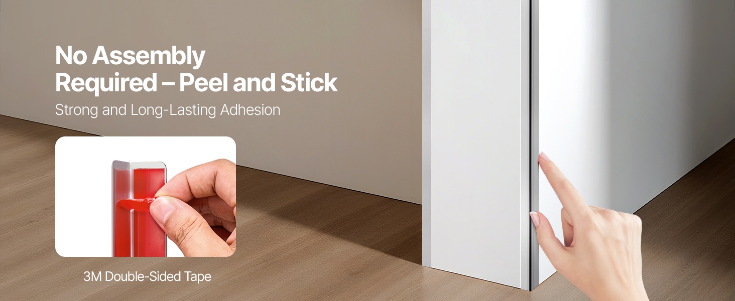 Kiinnityksessä käytetään 3M:n erittäin voimakasta liimateippiä, joka varmistaa tukevan ja pitkäkestoisen kiinnityksen ilman, että suoja irtoaa tai kuoriutuu reunoista. Teippi voidaan irrottaa ilman kalvon jäämiä, jolloin seinäpinta säilyy mahdollisimman siistinä.