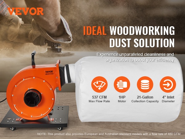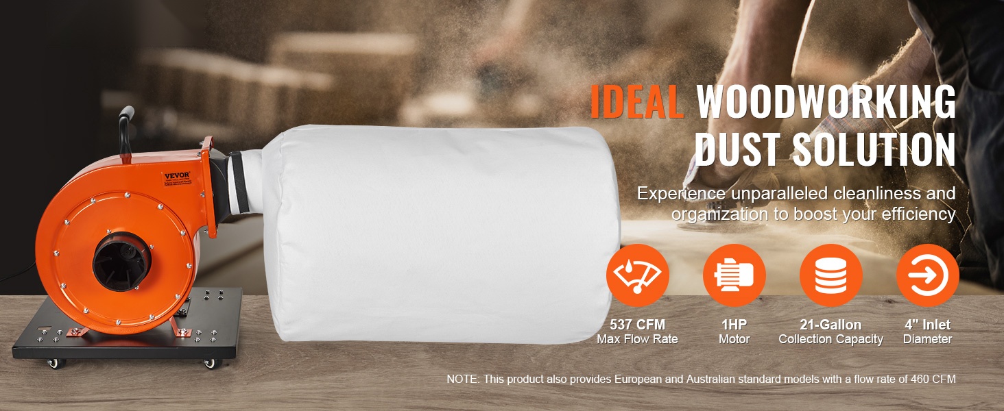 Tämä siirrettävä pölynkerääjä tehostaa puuverstaan siivousta keräämällä hienon puupölyn ja lastut suoraan lähteestä. Järjestelmässä on tehokas moottori, suurikokoinen pölypussi ja tarkka suodatus, jotka auttavat pitämään työympäristön siistinä ja miellyttävänä.