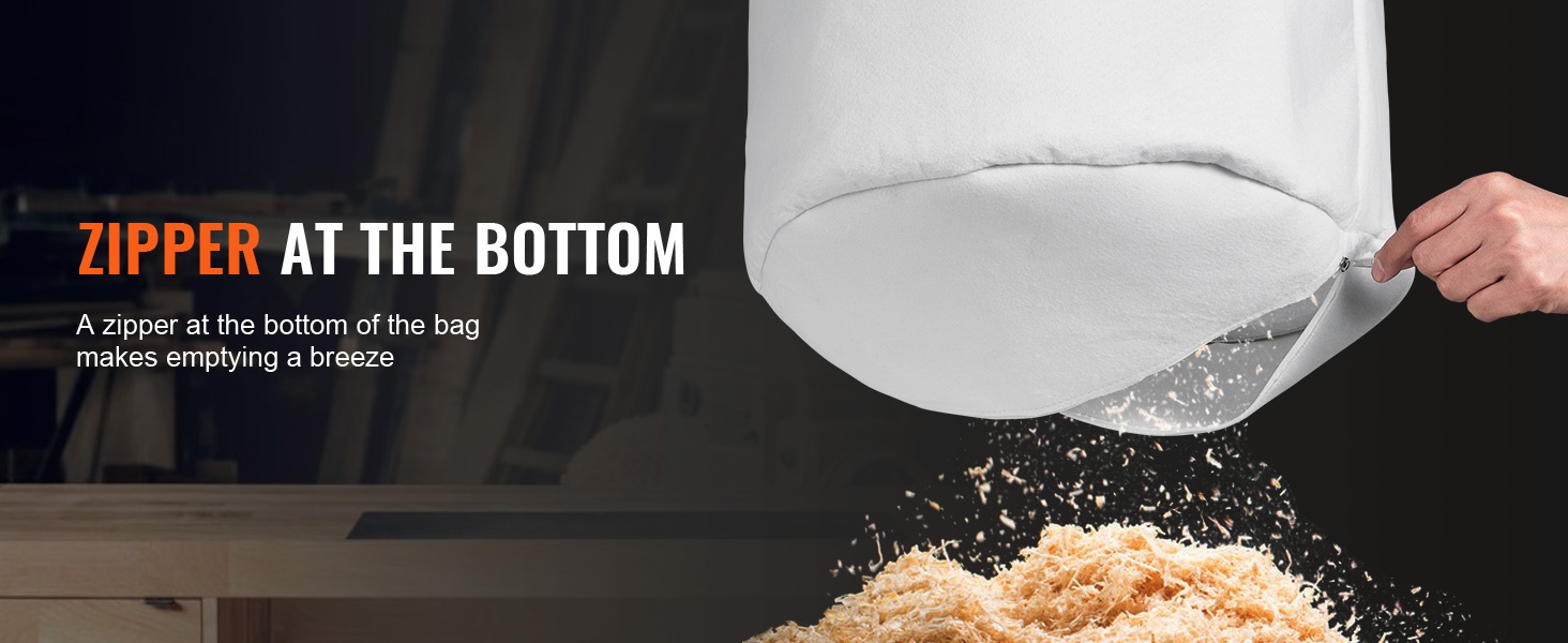 - Kestävä polyesterinen pölypussi, jossa alareunassa vetoketju helppoa tyhjennystä varten.