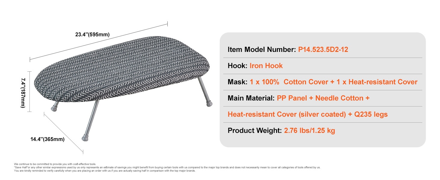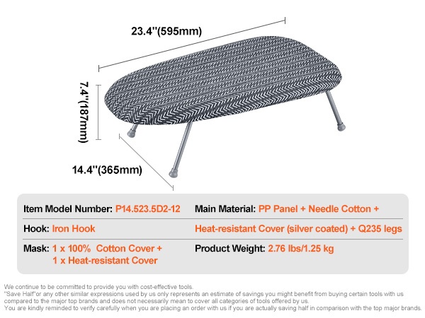 - Suuri silityspinta: 51 x 13 tuumaa vaatteille, vuodevaatteille ja muille tekstiileille