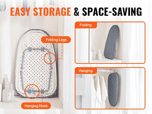 Tukeva kehikko ja vahva runko pitävät laudan vakaana käytön aikana. Taitettava rakenne helpottaa säilytystä pienemmässäkin tilassa, esimerkiksi kodinhoitohuoneessa tai vaatekaapin sivussa.