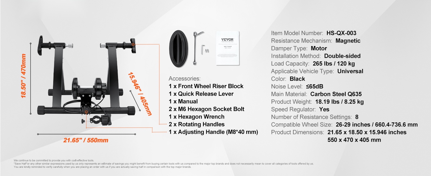 Tämän pyörätrainerin avulla voit harjoitella tehokkaasti kotona säästä riippumatta. Teline sopii 26–29 tuuman (660.4–736.6 mm) rengaskoolle ja muuttaa tavallisen polkupyöräsi helposti sisäharjoittelulaitteeksi.