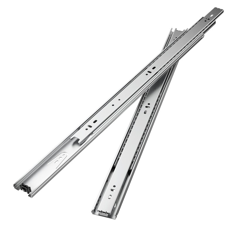 Nämä 24-tuumaiset sivukiinnitteiset laatikkokiskot sopivat hyvin keittiön, vaatekaappien ja muiden kalusteiden laatikoiden rakentamiseen tai kunnostukseen. Täyspitkän ulosvedon ja kuularakenteen ansiosta laatikot liikkuvat tasaisesti ja hiljaisesti myös raskaammalla kuormalla.