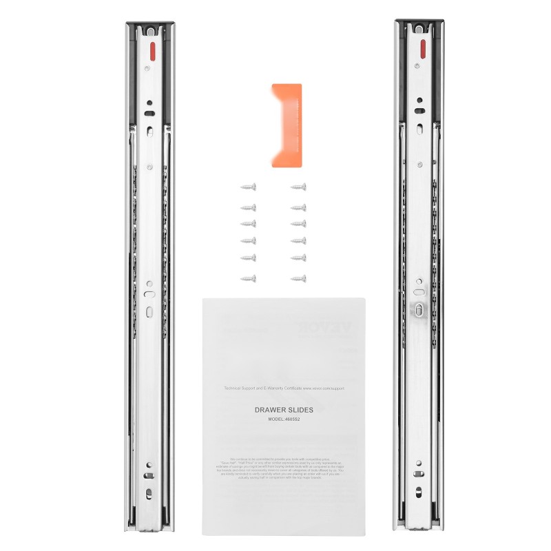 Nämä laatikkokiskot tarjoavat 100lbs kantavuuden luotettavaan säilytykseen. Galvanoitu teräsrakenne, pehmeä sulkeutuminen, kolmiportainen täysi ulosveto, automaattinen palautus, kevyt liuku ja kuulalaakerointi yhdistyvät helppokäyttöisyyteen ja kestävyyteen.