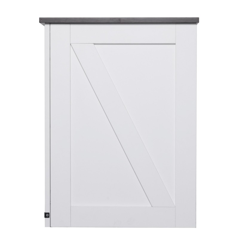 Magneettilukitteinen ovi mahdollistaa sujuvan avauksen ja sulkemisen, ja vetimet tekevät käytöstä miellyttävää. Monitasoinen säilytystila auttaa pitämään pienet tavarat järjestyksessä. Vesitiivis pöytäpinta on helppo pyyhkiä puhtaaksi ja pitää hyvässä kunnossa.