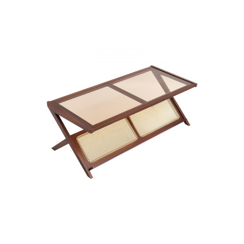 Tässä Z-muotoisessa rottinkisessa sohvapöydässä yhdistyvät boho- ja moderni tyyli. Karkaistu lasitaso ja luonnolliset bambujalat tuovat keveyttä ja ryhtiä sisustukseen, ja pöytä sopii hyvin olohuoneeseen, makuuhuoneeseen tai pieniin tiloihin.
