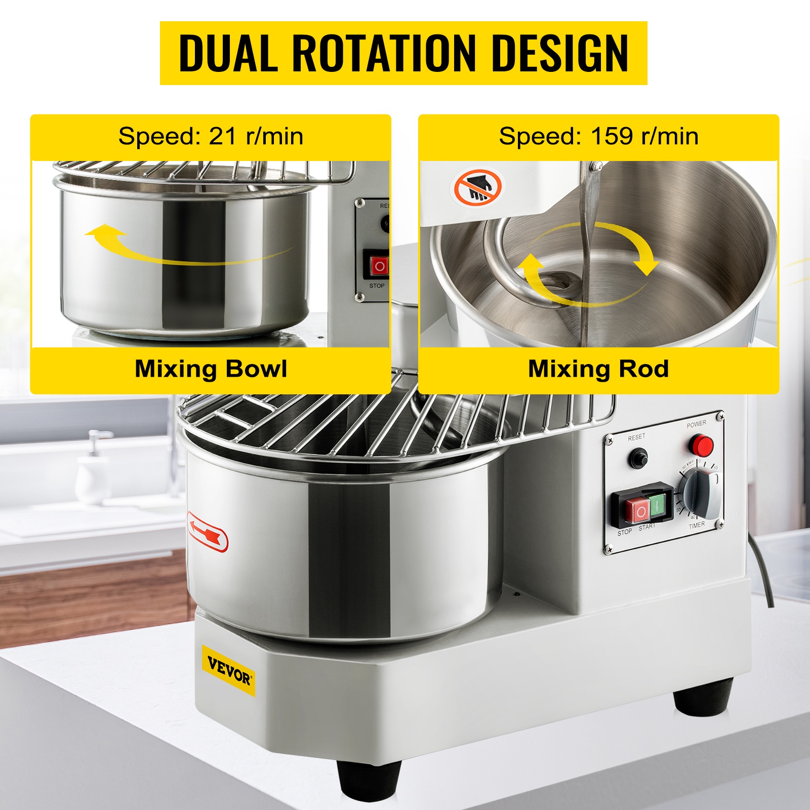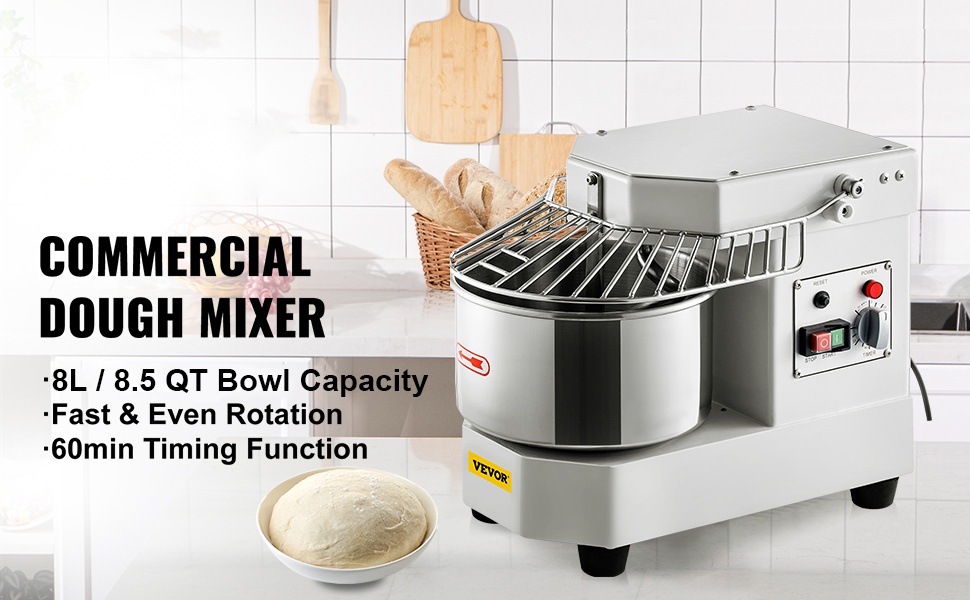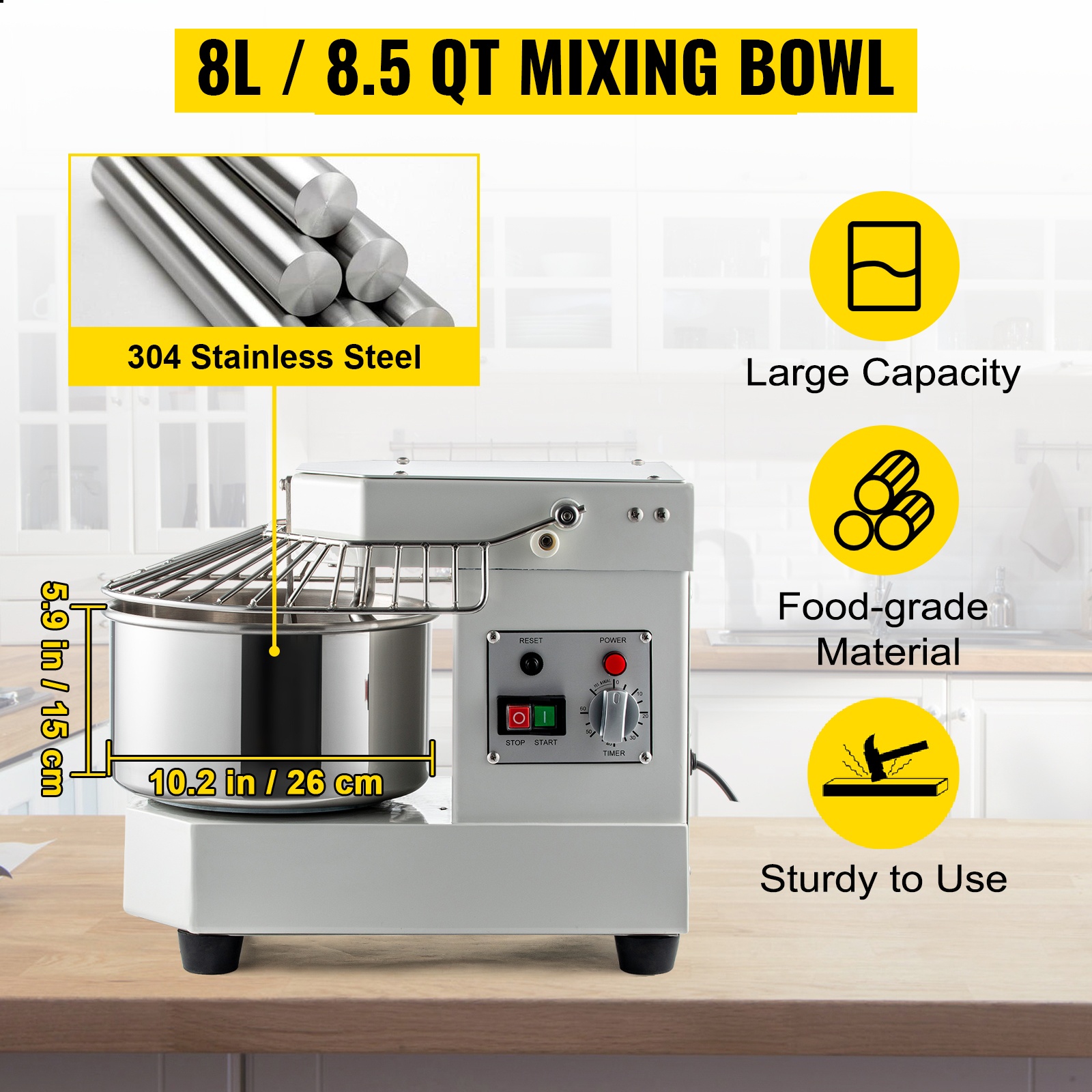 Spiraalitaikinakone 8 litran ruostumaton teräskulho 550 watin ajastin ammattikäyttöön