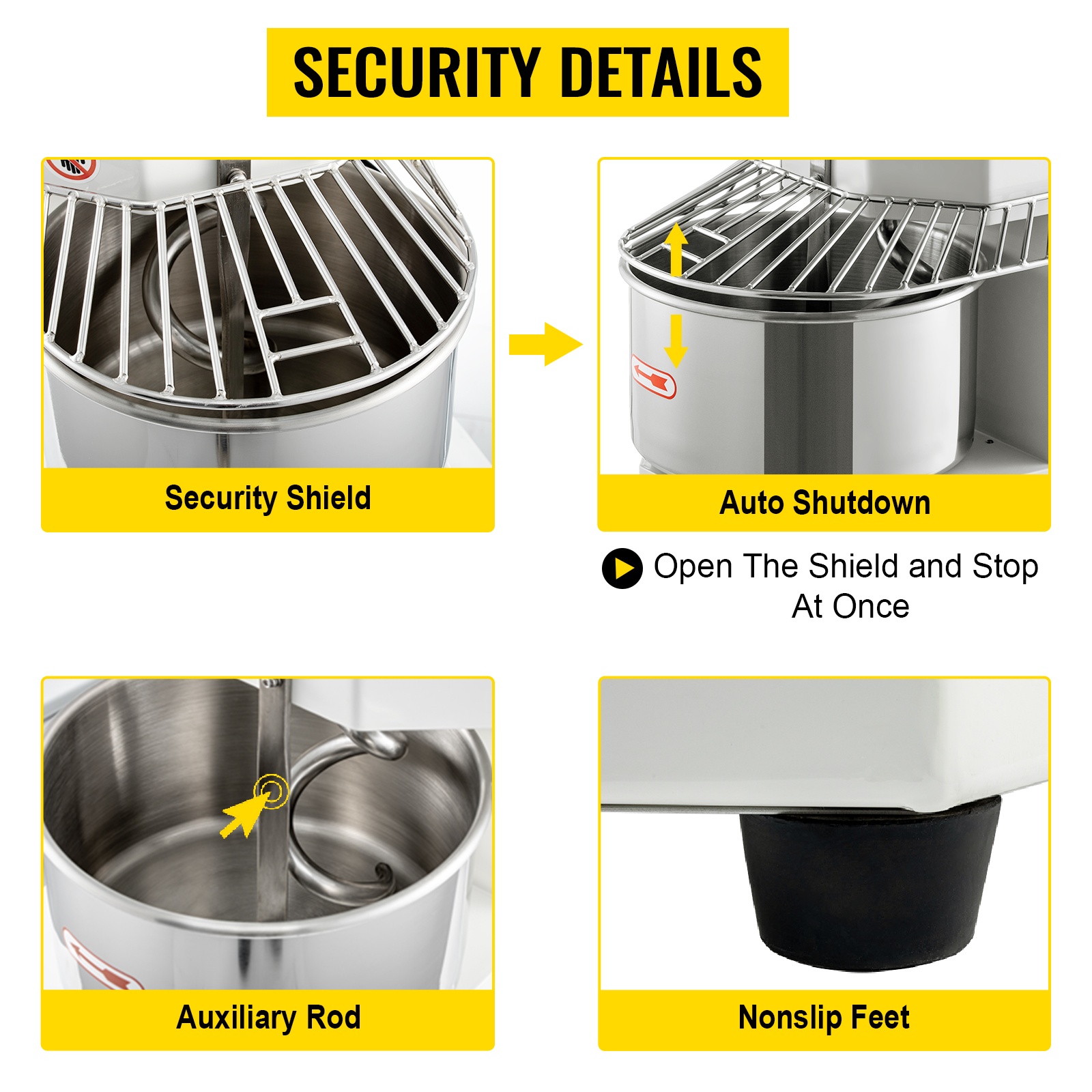 Taikinakone 28,5 litraa 1100 wattinen kolmiportainen ruostumaton teräskulho kolme sekoituslisäosaa
