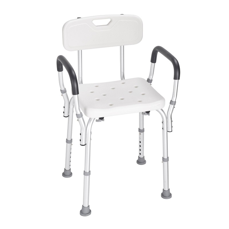 Suihkutuoli alumiiniseosrunko muovinen istuin selkänojalla kuusiportainen korkeussäätö 158,8 kilogramman kantavuus