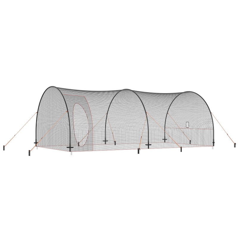 Rakenne yhdistää joustavan, mutta kestävän verkon ja tukevat tangot. Maakiilat ja kiinnitysköydet lisäävät vakautta, jolloin kehikko pysyy paremmin paikoillaan vaihtelevissa sääolosuhteissa.