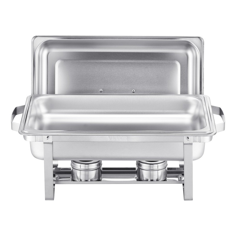 Tämä suorakulmainen buffet-lämmittinsetti sisältää yhteensä 4 lämpöastiaa, joilla pidät ruoan lämpimänä ja valmiina tarjoiltavaksi esimerkiksi häissä, juhlissa ja kokouksissa. Jokaisessa yksikössä on kansi, vesiallas, täysikokoinen ruokapannu, tukeva teline sekä polttoainepidike.