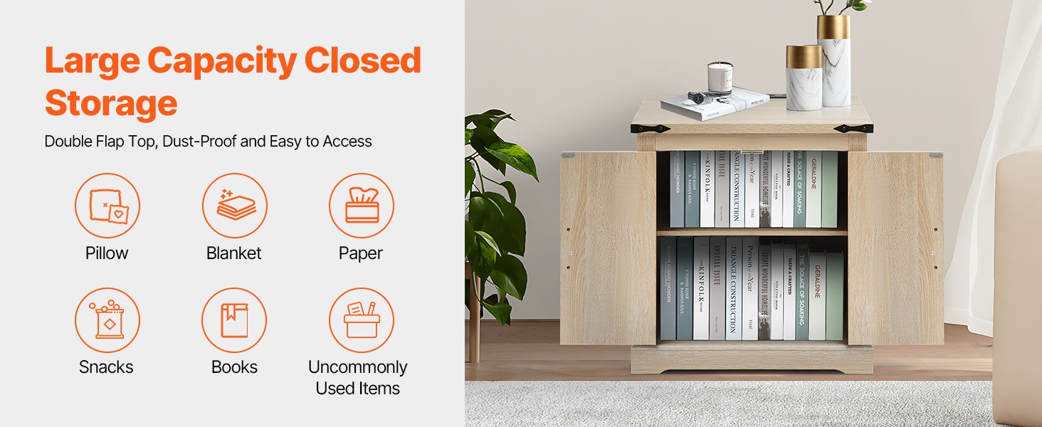 - Kaksiosainen, ylös kääntyvä kansi helpottaa vilttien, tyynyjen ja muiden tavaroiden säilytystä