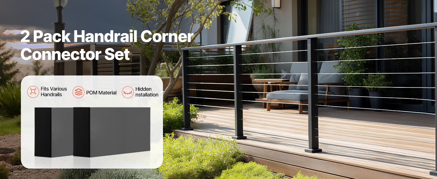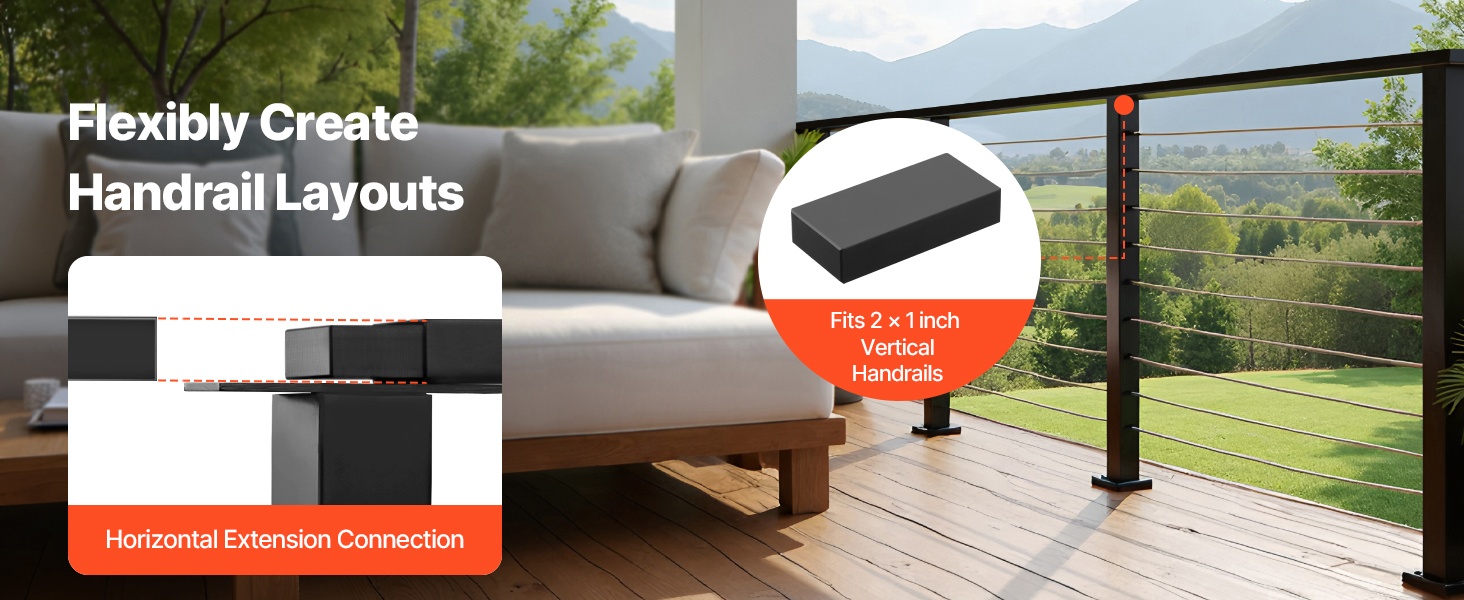 Yleiskäyttöinen liitin, joka sopii 2 x 1 tuuman kaiteisiin. Soveltuu suorakulmaisiin kaapeli- ja terassikaidejärjestelmiin ja auttaa luomaan yhtenäisen, siistin kaiteen.
