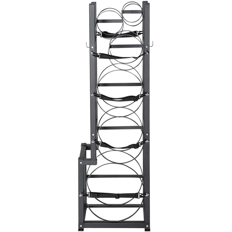 Tämä kolmikerroksinen sylinteritankkien teline tarjoaa turvallisen ja järjestelmällisen säilytysratkaisun kylmäaine- ja kaasupulloille. Telineen koko on 395 × 330 × 1265mm / 15.55 × 12.99 × 49.8 inch, ja se soveltuu hyvin esimerkiksi tankkivarastoihin ja huoltoajoneuvoihin.