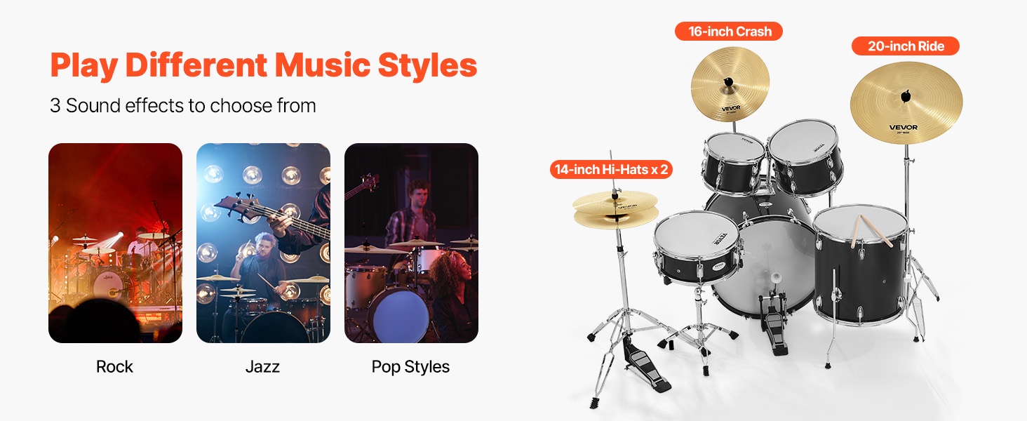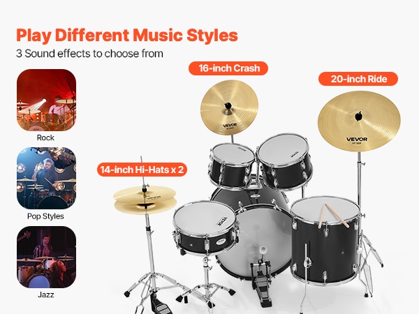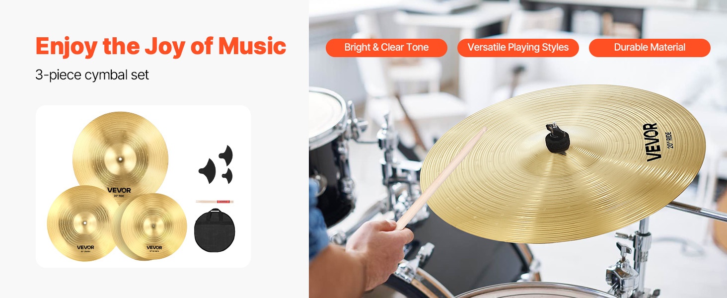 Symbaalipaketti tarjoaa 4 erilaista sointia: hi-hat, crash, ride ja splash. Jokainen symbaali tuo oman sävynsä soittoon, olipa tyylinä rock, jazz tai pop. Setti sopii erilaisiin kokoonpanoihin ja useille musiikkityyleille.