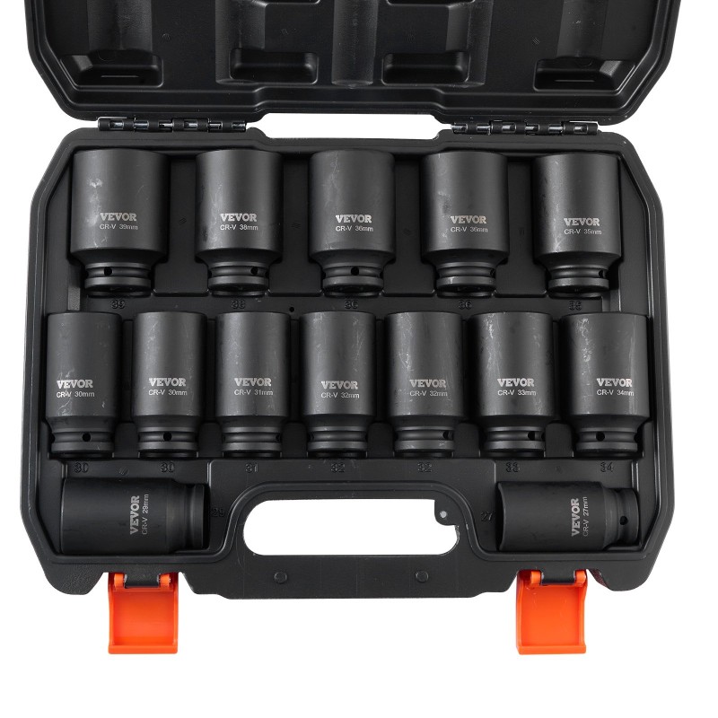 1/2"-vetoinen akselimutteri-iskuhylsysarja raskaaseen käyttöön. Sarja sisältää yhteensä 14 syvää metristä hylsyä, joita voidaan käyttää sekä 6-kulmaisille että 12-kulmaisille muttereille. Korkealaatuisesta, korroosiota kestävästä CR-V-teräksestä valmistetut hylsyt sopivat vaativiin auto- ja teollisuuskorjauksiin.