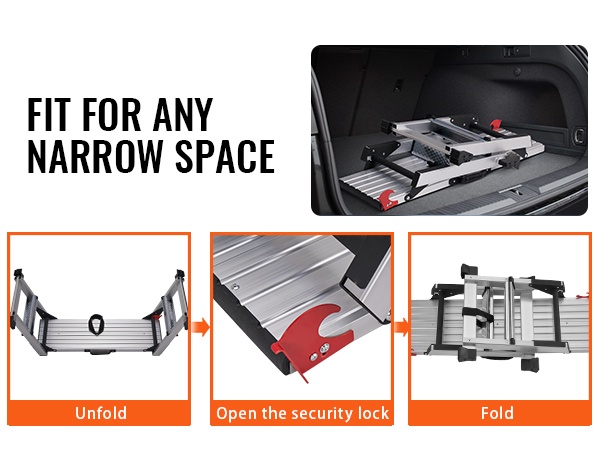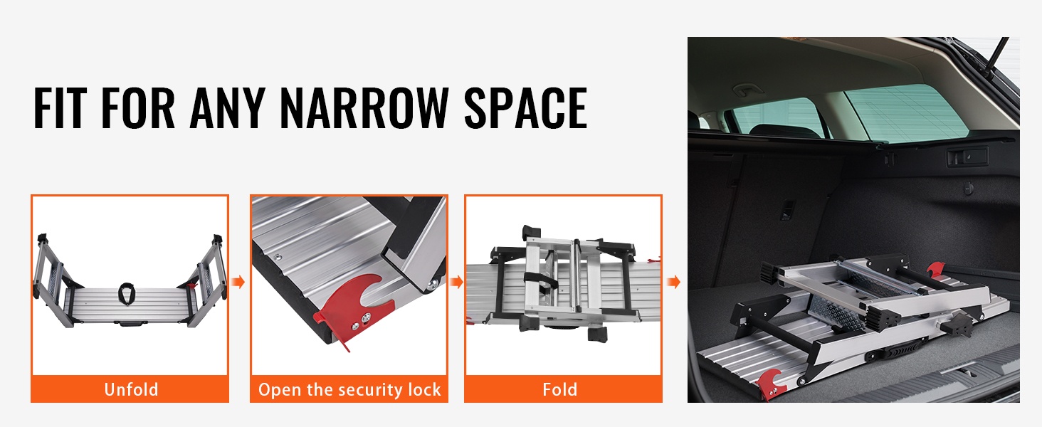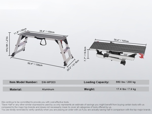 Taitettava alumiininen työalusta kantavuus 200 kg korkeus 48,7 cm liukuestejalat