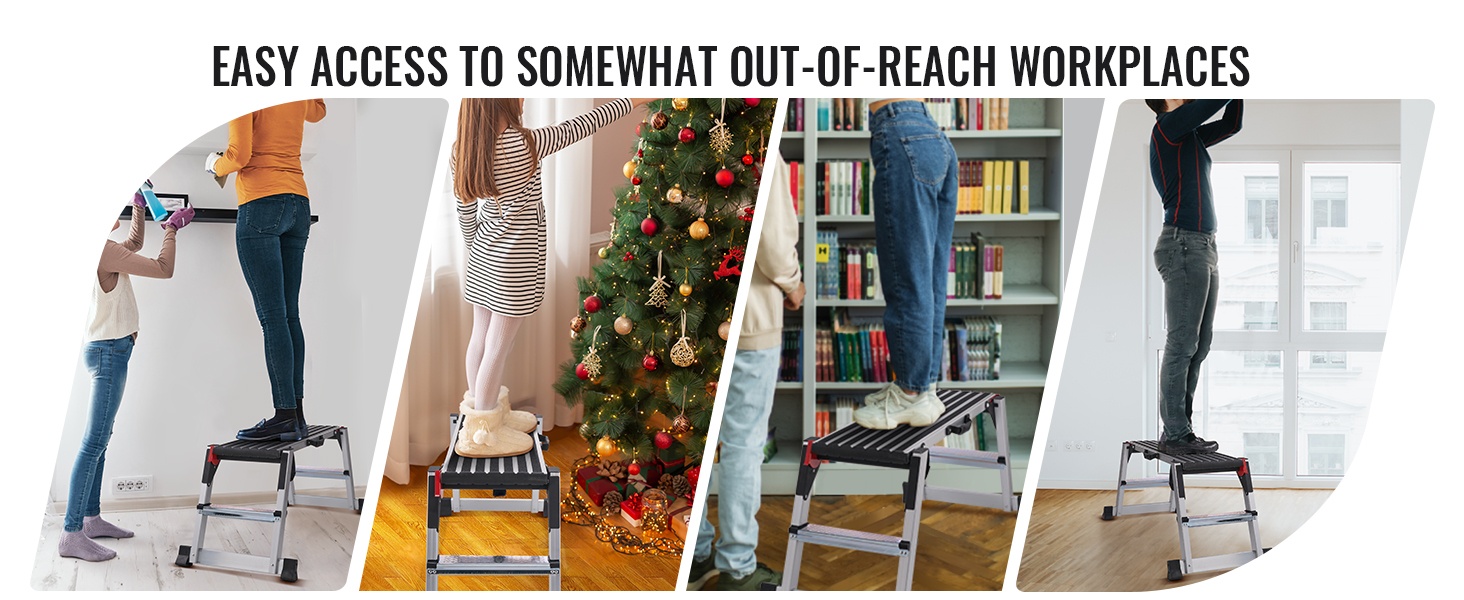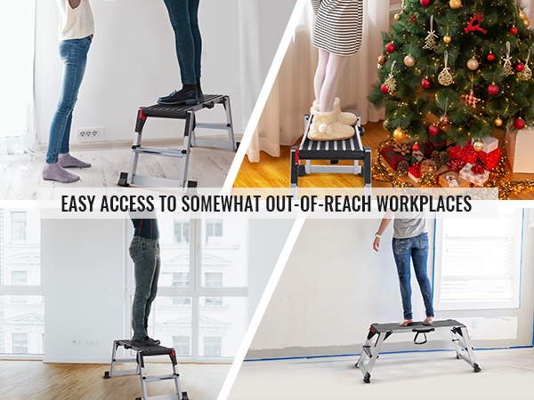 Työskenteletkö yksin korjausten tai korkealla tehtävien maalausten parissa? Tukeva ja turvallinen työalusta helpottaa työtä merkittävästi. Korkealujuuksinen alumiininen työjakkara kestää jopa 660 lbs kuorman ja tarjoaa vakaan työskentelytason monenlaisiin projekteihin.