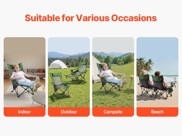 Tämä taitettava lepotuoli, jonka mitat ovat 52.3 (istuessa) / 65.3 (makuuasennossa) x 21.6 x 15.7 tuumaa, tarjoaa runsaasti tilaa ja kestävää mukavuutta. Rautarunko kestää jopa 220 lbs. Selkänojan 4-portainen säätö auttaa lievittämään hartioiden, niskan ja käsivarsien rasitusta leiriytyessä tai rentoutuessa ulkona.