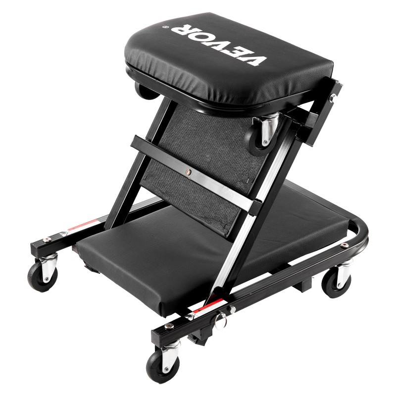 Tämä taitettava mekaanikon makuualusta toimii sekä matalana työjakkarana että makuualustana auton alle. Pituus 40 in / 1016 mm ja enimmäiskuormitus 450 lbs / 204.1 kg tarjoavat tukevan ja mukavan alustan eri kokoisille käyttäjille. Pehmustettu rakenne helpottaa matalalta tehtäviä huolto- ja korjaustöitä.