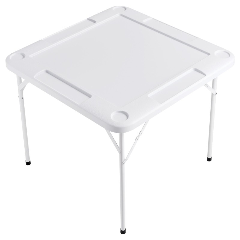Taitettava neliöpelipöytä 900x900 mm muovipöytälevy 4 pelaajalle mukitelineillä pelimerkkikupeilla ja dominoilla