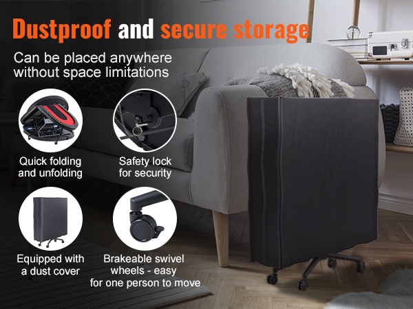 - Taittuva rakenne, turvalukitus ja mukana tuleva pölynsuoja