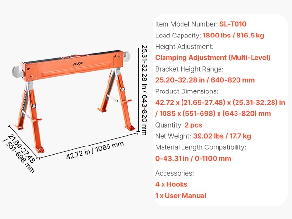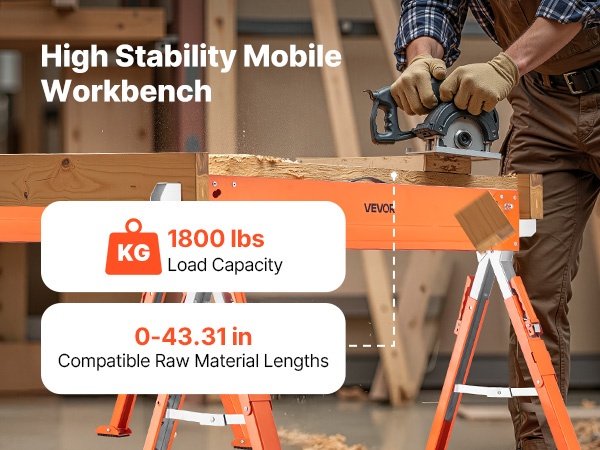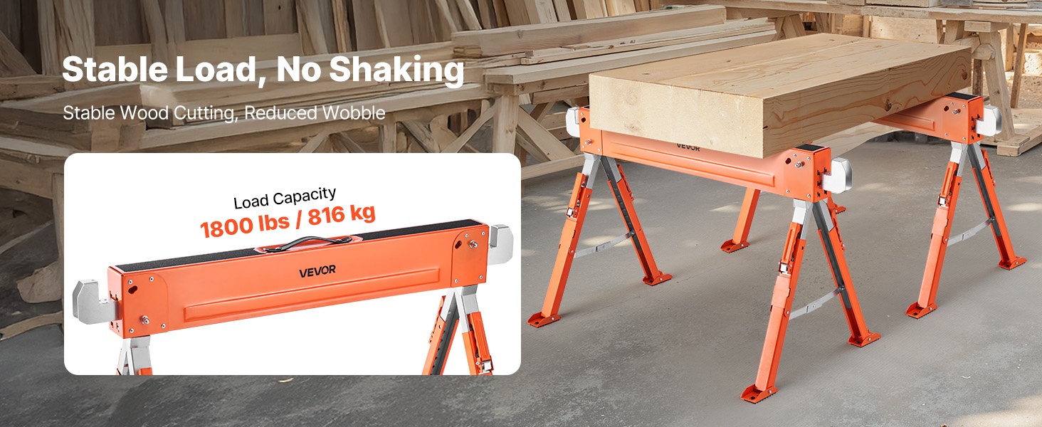 Raskaan käytön kannettavat sahapukit on valmistettu tukevasta teräksestä. Kun tukijalat lukitaan paikoilleen, pukki pysyy pystyssä ja kantaa painon ilman huojuamista.