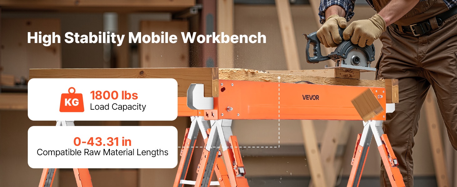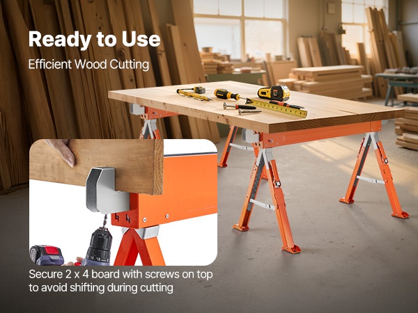 Kestävät taitettavat sahapukit voidaan muuttaa vahvaksi ja luotettavaksi työpöydäksi asettamalla niiden päälle puulistat. Näin puun katkaisu ja käsittely sujuvat tehokkaammin.