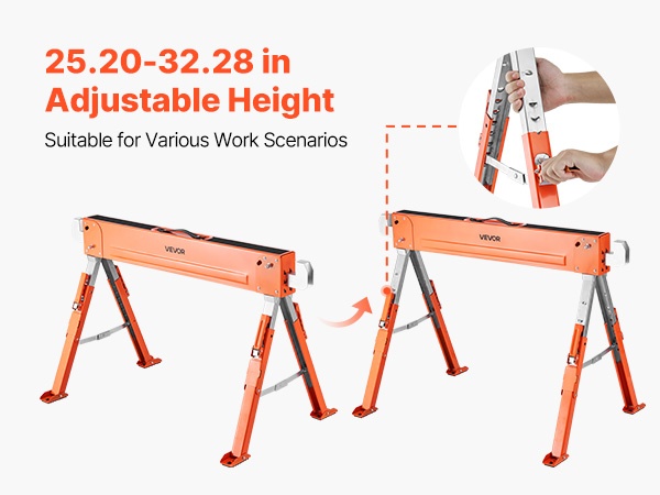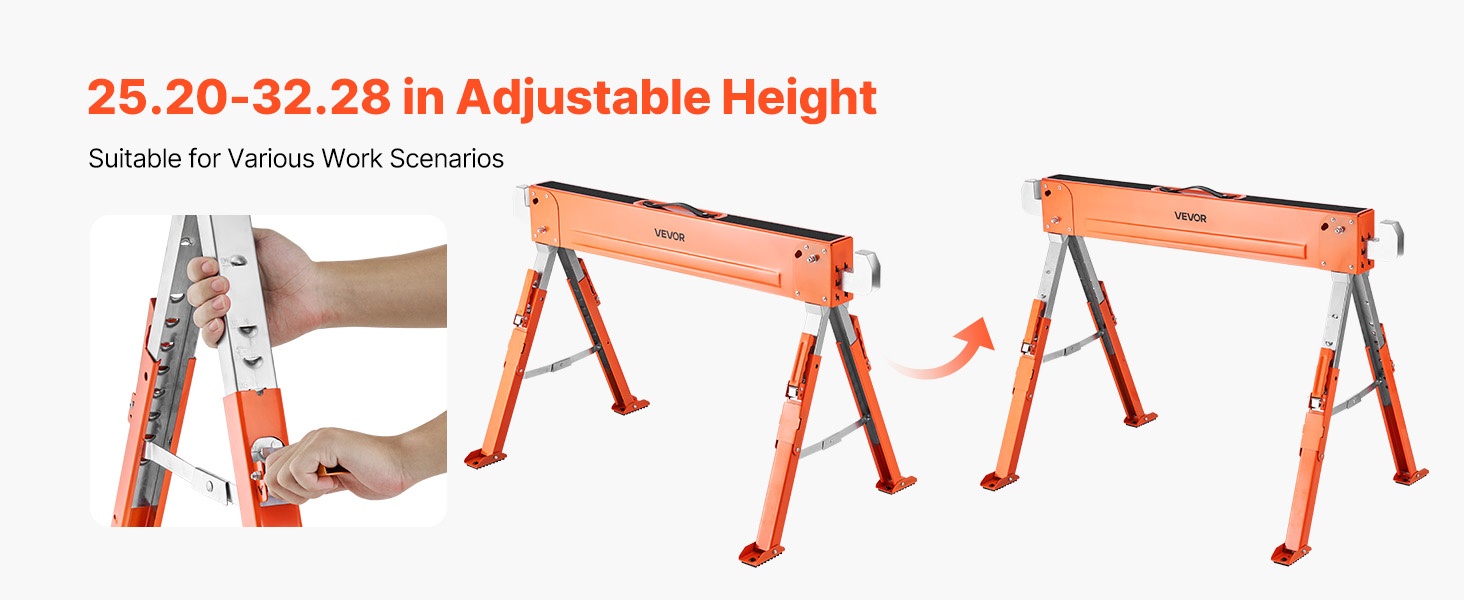 Taitettava teräksinen sahapukki pari 600,1 kg kantavuus 730 mm korkeus
