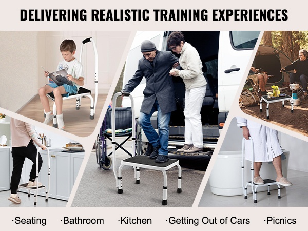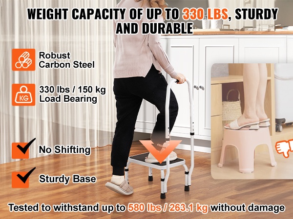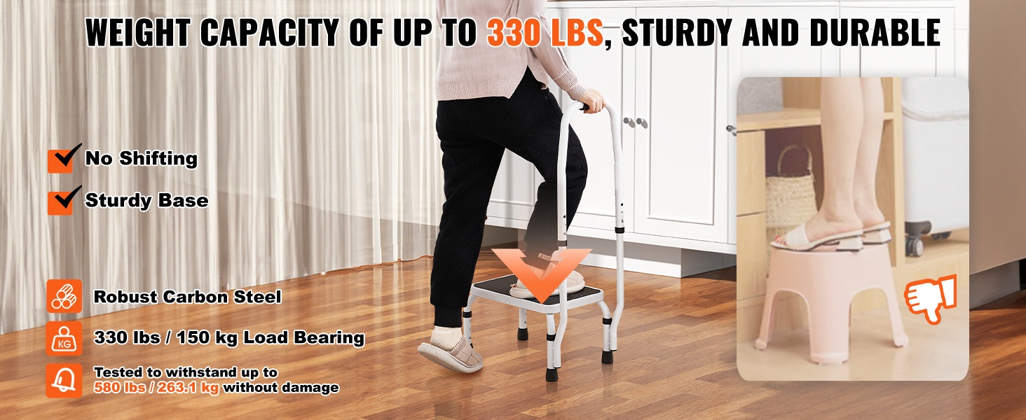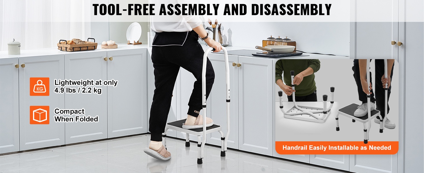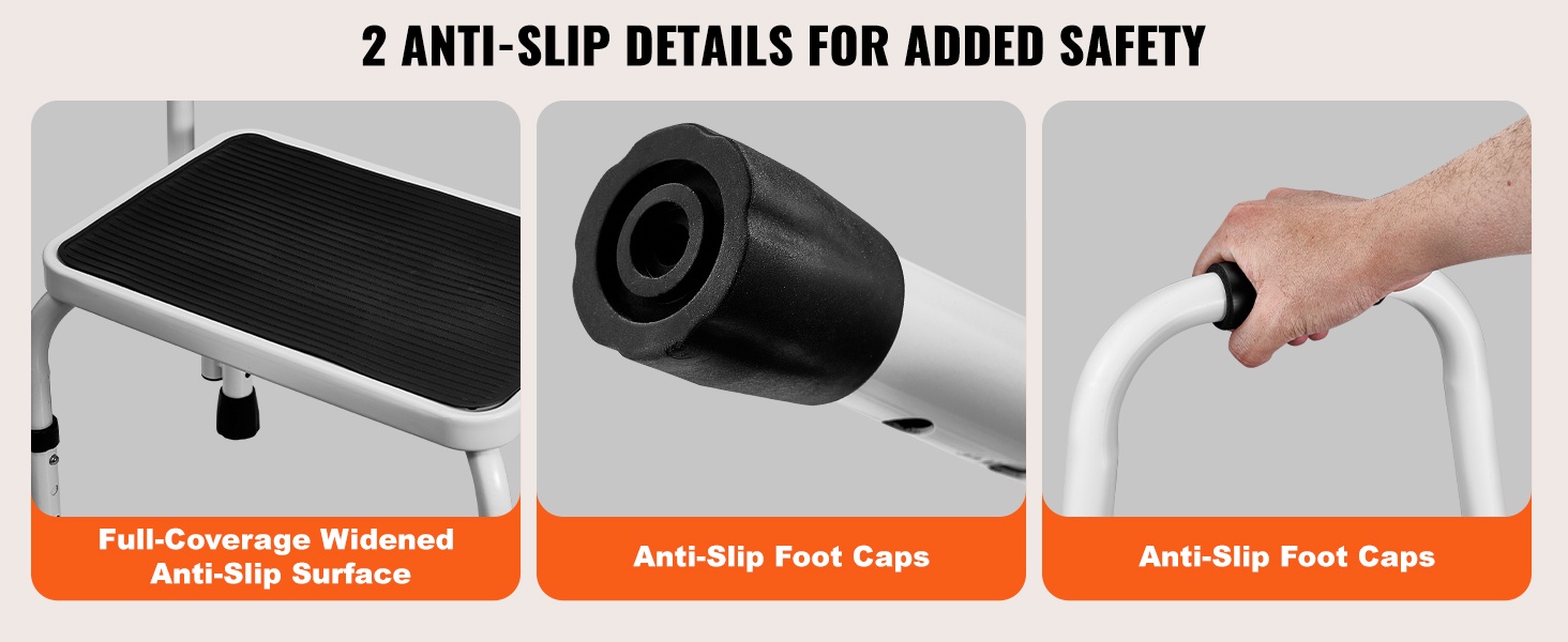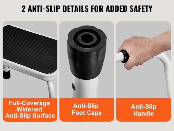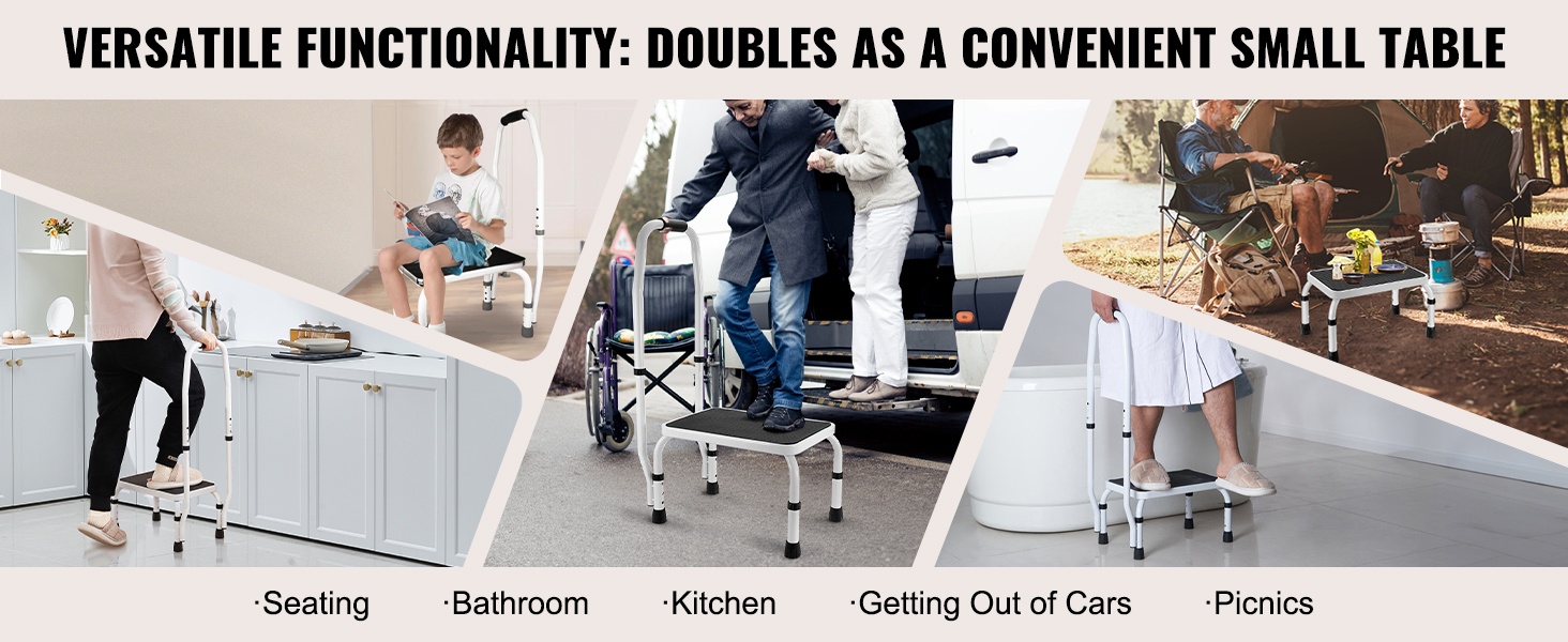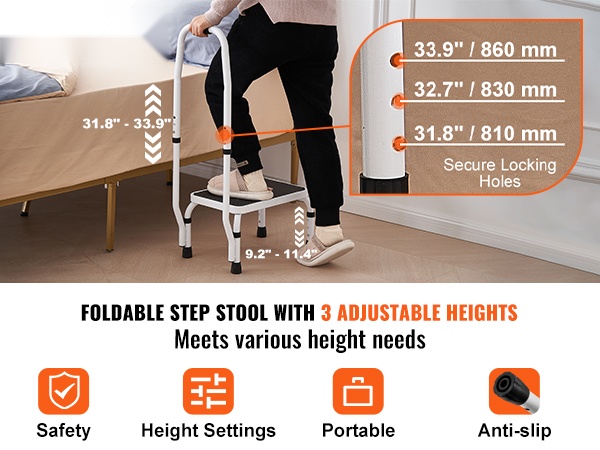 Taitettava yksitasoinen teräsjakkara 150 kg kantavuus kolme säädettävää korkeutta liukumaton askelma