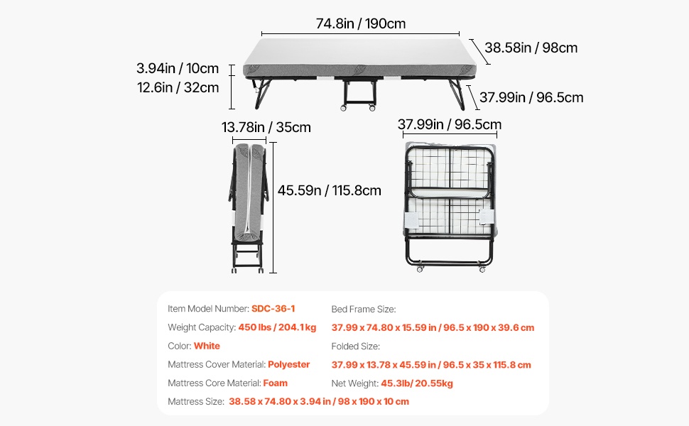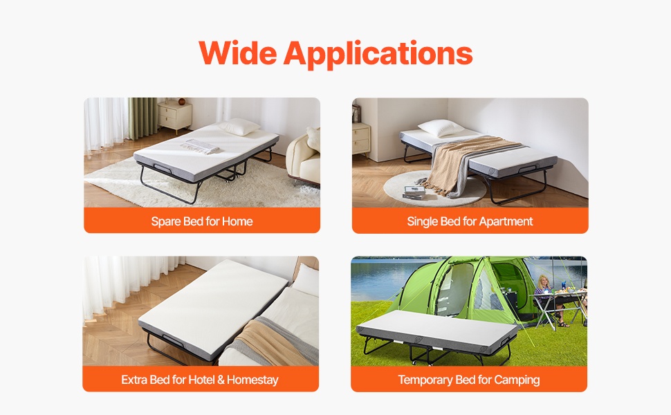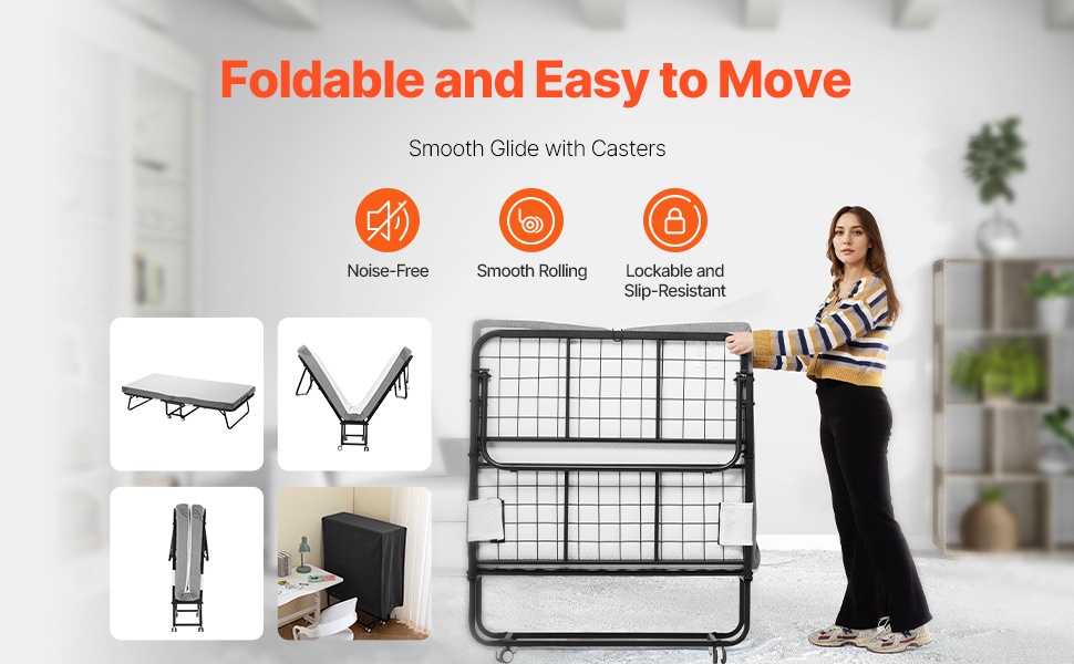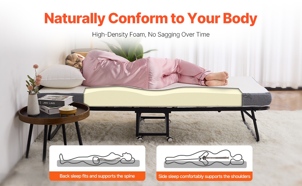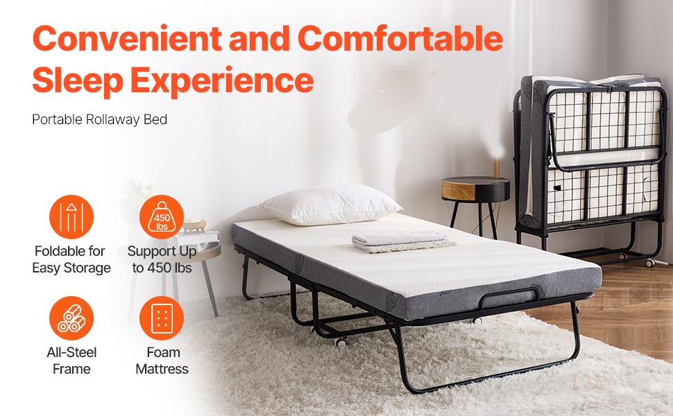 Tämä rullattava taittosänky on helppo avata ja sulkea, joten se sopii hyvin tilapäiseen nukkumiseen kotona, majoitustiloissa tai vierashuoneessa. Vankka metallirunko ja mukava patja tarjoavat tukevan ja levollisen unen. Sänky on helppo pitää puhtaana ja vie vähän tilaa taitettuna.