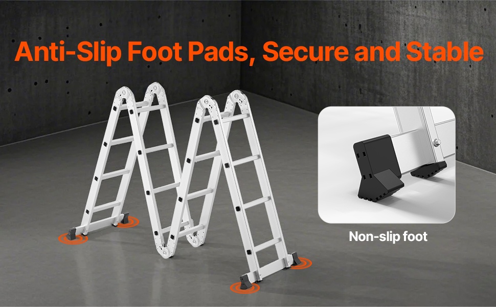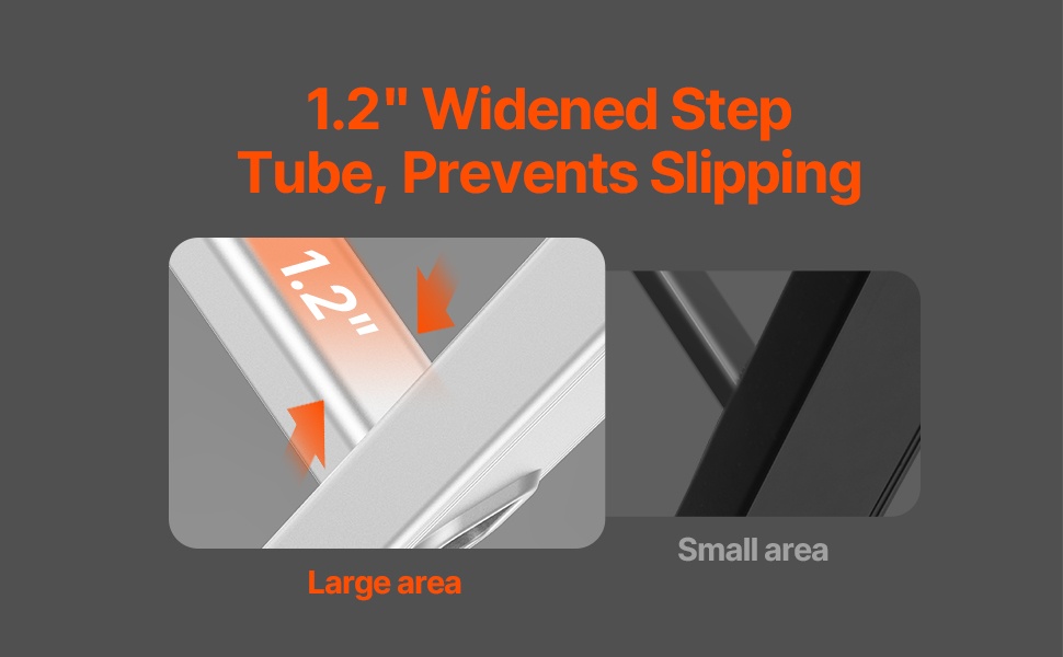 Noin 1.2" levennetyt askelmat parantavat tasapainoa ja käyttömukavuutta, mikä helpottaa työskentelyä pidempiä aikoja. Tasapainotangossa olevat liukuestepädit jakavat painon tasaisesti ja ehkäisevät tikkaiden liukumista erilaisilla alustoilla.