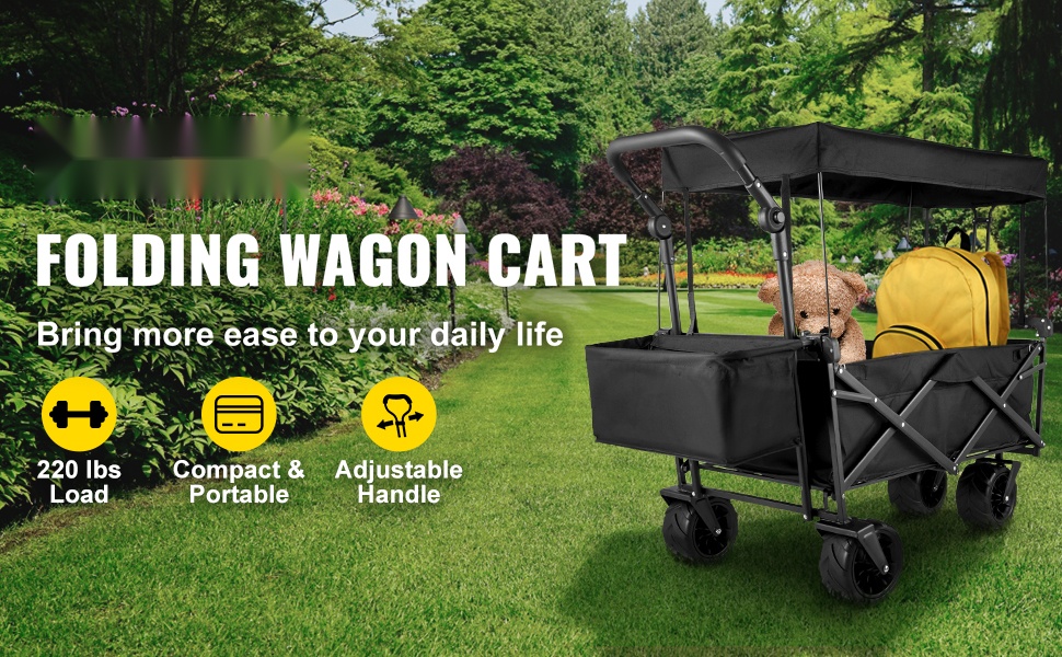 Jauhemaalattu, korroosiolta suojattu teräsrunko tekee vaunusta tukevan. Enimmäiskantavuus on 220 lbs / 100 kg, joten vaunu sopii monenlaisten kuormien siirtämiseen arjessa ja vapaa-ajalla.