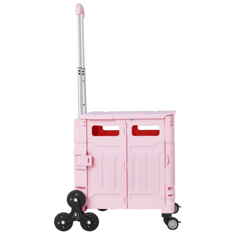 Taittuva portaikkokärry 65 litraa portaikkopyörillä ja kääntyvillä pyörillä pinkki teleskooppikahvalla